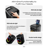 سایر قابلیت‌ها : ۲ میکروفون بی‌سیم - چراغ‌های RGB - ورودی گیتار